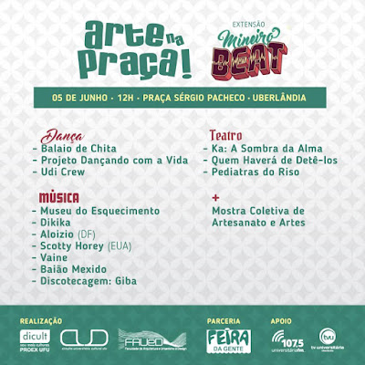 Acontece no próximo dia 05 de junho, a partir do meio-dia, o projeto Arte na Praça, uma das mais importantes ações culturais da Universidade Federal de Uberlândia.